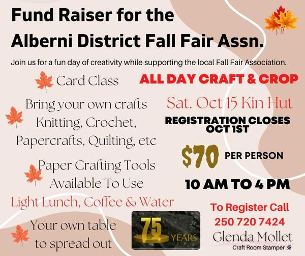 Subscription that you can participate in. Members of this group get 4 cards each month instead of just 3. The 4th card is exclusive to my Tutorial Subscribers. CLICK HERE to contact me for more information. If you live in Canada, all 4 options are available to you. If you live outside Canada, the Tutorial Option is for you! CLICK HERE to register! Don't forget, if you already own the Splendid Day Bundle or Suite, you can choose something else instead and STILL get the card kits and class for FREE! FALL FAIR FUNDRAISER! I am hosting an All Day Craft & Crop to raise funds for the local Fall Fair Association. Lots of room to craft what you want, AND I am doing a card class as well. The last day to register is October 1st and we will get together on the Kin Hut on the Fall Fair Grounds on Sat. Oct 15 starting at