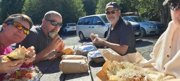 going away suite. Well, I got rid of that as soon as I could lol. It was over 25 deg celcius both days. We spent most of our honeymoon in Tofino camping at Mackenzie Beach. You may know that we spend time every March camping at exactly the same campground each year for the past 16 ish years. And every Sept 25th for the past few years, we have enjoyed a Tofino Adventure too. Once again this year, it was a perfect day. Sunshine, Tacofino fish tacos and burritos, Chocolate Tofino ice cream treats, a walk on Mackenzie