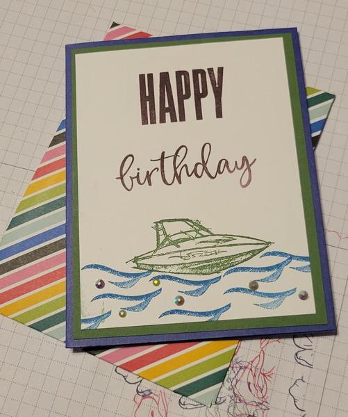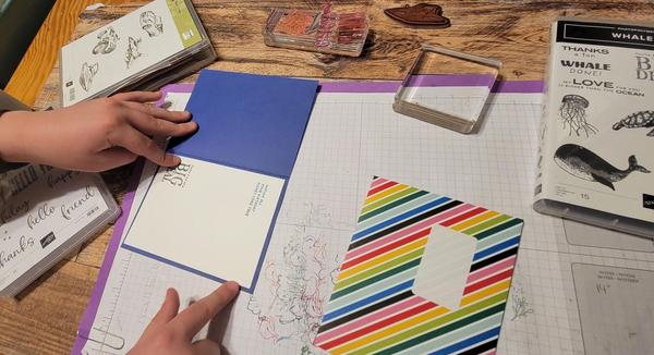 . Oh Hello Autumn! Yes our weather has been wet, windy, sunny and the trees are showing their gorgeous fall colour leaves. We are lucky that we live in an area that doesn't get a lot of snow, and it usually doesn't happen until late December and into January. But we are ready for it. All the outside chores are done in preparation of winter hitting. The trailer is cleaned, drained and it's winter sweater put on. All the garden and lawn stuff is done and we only have more leaves to blow off the driveway. But there is still lots of leaves on the trees, so that will be ongoing for a few weeks now. Our middle Grand Son created a card for a friend this week. He is very creative and I love how the card turned out. See the pictures below. I have been busy prepping for my trip to Vancouver tomorrow to the Stampin' Up! OnStage mini convention. It's the first time we are able to gather in person in 3 years, and I am ready for it! Have a super duper week, and stay tuned to my face book page and VIP group for pictures from the event. I "may" just get my hands on the new Jan to Jun Mini Catalogue too! THE FITTING