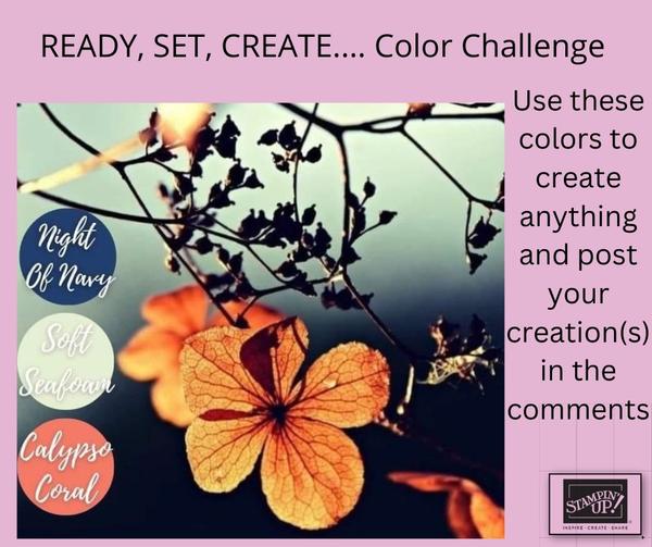 - Coordinating colors: Cajun Craze, Calypso Coral, Crumb Cake, Garden Green, Night of Navy, Pear Pizzazz, Petal Pink, So Saffron, white.