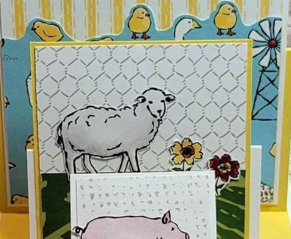 2023 Â Sunshine Stamp Crafts at 10 am Monthly Club Stamping was in person at 1 pm and virtual at 6:30 pm. Â We stamped together with the Seaside Bay bundle! Â Â Thursday, February 9, 2023 Â I was live at 8 pm (Pacific Time) in my VIP Group and we made a Triple Easel Card. I used the A Day At The Farm free designer paper for the first card, then the free Favoured Flowers paper for the 2nd