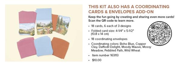 And there is an Add-on too!Exploring In Color Cards & Envelopes Available starting: 2 May, while supplies last Item number: 163113 Price: $13.75 This add-on includes - 18 cards, 6 each of 3 designs