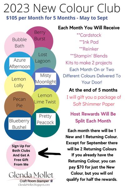 May 2, 2023 Hello . Today is THE DAY!!! The new Stampin' Up! Annual Catalogue is live and open for Business! CLICK HERE to download a copy. EMAIL ME if you would like a Canadian Catalogue! More information is below :) Hope to see you soon, In My Craft Room! Have a great week! IN COLOUR CLUB $75 flat rate per