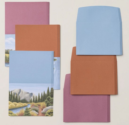 And there is an Add-on too!Exploring In Color Cards & Envelopes Available starting: 2 May, while supplies last Item number: 163113 Price: $13.75 This add-on includes - 18 cards, 6 each of 3 designs