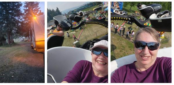 panel was cut from the Masterfully Made 12" x 12" DSP and layered on to Bubble Bath Cardstock. This panel was layered again on to Berry Burst Cardstock, and then added to a Bubble Bath card base. The foliage circle element was adhered to the front of the card using Stampin' Dimensionals, and a bow made from Bubble Bath ribbon from the ⅜" (1cm) Sheer Ribbon Combo pack attached above the sentiment label using a glue dot.  Shop my top product picks for this project:  Click the link below to download the tutorial.  Thanks for visiting with me today, and I will see you soon, In My Craft Room! Stampin' Smiles and Bye For Now. Glenda Here's a picture of our trailer on the day we left the north (at 4:45 am) and a couple of pictures I took from on top of the Octopus ride at Billy Barker Days. The dude behind me is our son Chuck, and you can just see the head of our Grandson,