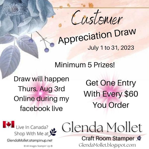 products during July. Every order of $60 or more gets at least one entry into the draw. Get more entries for every $60 after that  Only until July 31st then it's closed and the draw will happen live during my Thursday Thoughts Live Stamping on Thurs. Aug 3rd.  Prizes include:  Two-Tone Flora Dies (dies only, does not include stamp set) Something