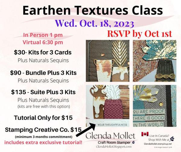 The suite consists of the Earthen Textures stamp set, coordinating dies, Earthen Elegance designer paper
