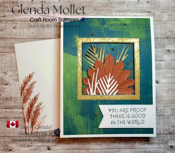 with coordinating envelopes (measuring 3½" x 3½", or 8.9 x 8.9 cm), and 8 matching treat packages (measuring 3½" x 5" x 2", or 8.9 x 12.7 x 5.1 cm). The autumn theme features graceful pumpkin designs, with specialty pre-cut gold foil embellishments. A Lost Lagoon Classic Stampin' Spot is also provided, and other coordinating Stampin’ Up! colours are Copper Clay, Crumb Cake, Mossy Meadow, and Pebbled Path. Your kit is packaged in a custom coordinating box you can use to store your finished note