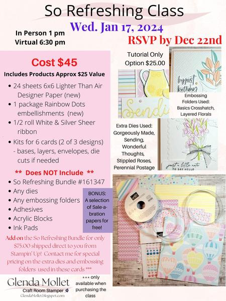 The first class in January will feature the So Refreshing bundle. I was going to do this in November, but time got away from me. I had a few questions about when the class will happen, so here it is!