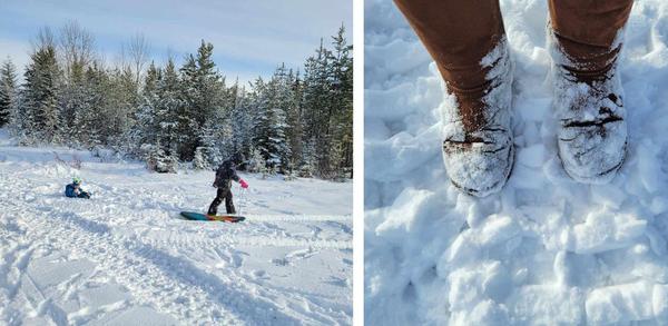 a picture of them playing in the snow, you can't see their faces.  And my boots too. It was cold and snowy and I loved every minute of it! We headed up into the mountains for a campfire and a chance for the kids to play in the deeper snow. Â