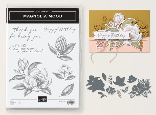 NEW Online Exclusives Coming SoonIt's almost time for the first Online Exclusive product launch of 2024! Stampin' Up! continues to grow the number of NEW products that will be released online with each launch that are not listed in any of our catalogues, and there is a fabulous selection coming on March 5th. I have some sneak peeks to share with you! Â The Flowering Zinnias Suite Collection includes a cling stamp set, coordinating dies, a 3D embossing folder, 12" x 12" Designer Series Paper, and Adhesive-Backed Shiny Sequins. The stamps and dies are available to purchase as a bundle, saving you 10%!  Â The Encircled in Nature Bundle comprises a photopolymer stamp set and coordinating dies, available separately or as a bundle (saving you 10%). Build floral and foliage wreaths with the stamps and dies in this bundle, and add heartfelt sentiments with typography in the hand-penned style.  Â And of course my favourite bundle, Magnolia Mood ... There will be a class soon, so stay tuned for that information. Â