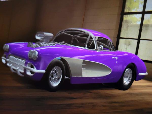 some game for designing virtual cars and trucks. So we designed a car together.Ā He agrees with me about the cars from 1957 being the best ones, so we went with this one, and of course it is in my favourite colour ... Ā Apparently when it did a wheelie the back wheels came completely off the road. BONUS!!! Ā