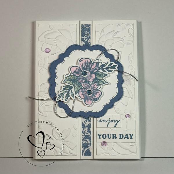 Today's free card tutorial features the Thoughtful Expressions bundle. You all know how disappointed I was when the dies were retired, but if you have them you can still use them. I won't be getting rid of mine any time soon! This beautiful card also uses the Layered Florals embossing folder and is a fun fold too! We would love to see what you create with these stamps. Make sure you pop to my facebook VIP Group and share your cards in the Share It Saturday draw! Â