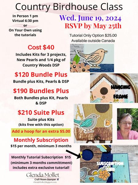 COUNTRY BIRDHOUSE JUNE CLASS & MONTHLY TUTORIAL SUBSCRIPTION Â Registration open now until May
