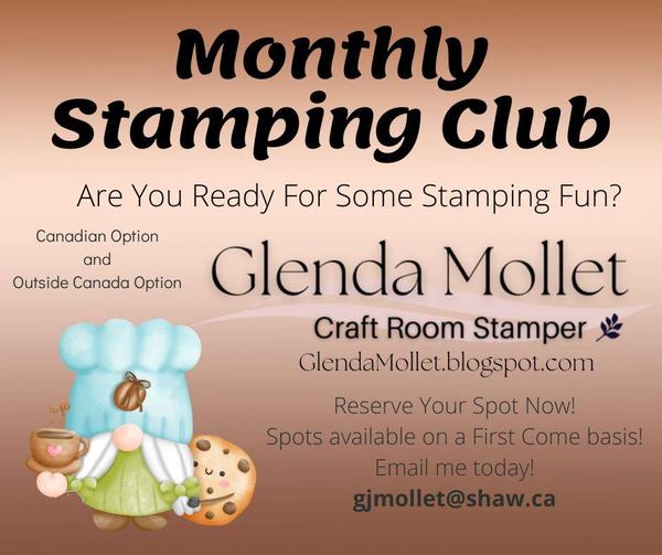 If you live outside Canada, you can also participate.  You pay for the tutorials each month, and will get an invitation to stamp with us for the Virtual class. There will be Thank You gifts every time you reach 6 consecutive months.  With the changes I am implementing in September, the club cards will be the same as the