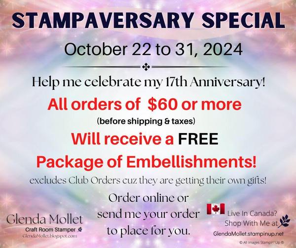 My Stampaversary Ordering SpecialHelp me celebrate my 17th Anniversary with Stampin' Up! Â