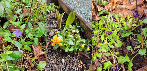 Periwinkle, Pansy and Johnny Jump Ups! Spring is definitely here ... I love seeing these strong and determined flowers showing their spring colours. Â