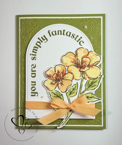 Free Weekly Tutorials Just For You! Â The artist has used the Thankful Garden stamp set, masks and dies to create this pretty card. I love the added use of the Everyday Arches dies and the now retired Distressed Tile