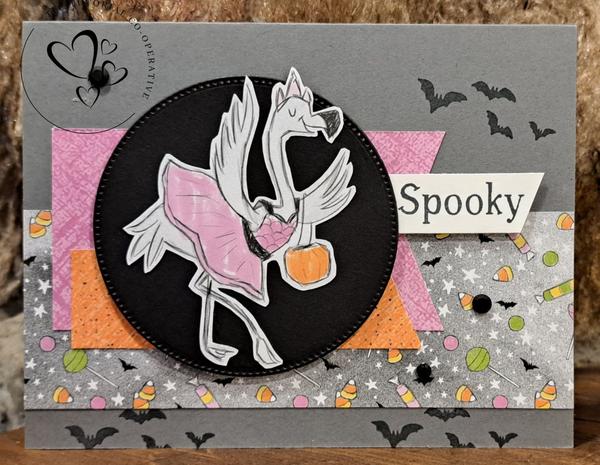 Spooky Suite, arranged on a clever cut-away of designer paper for a one-of-a-kind look.