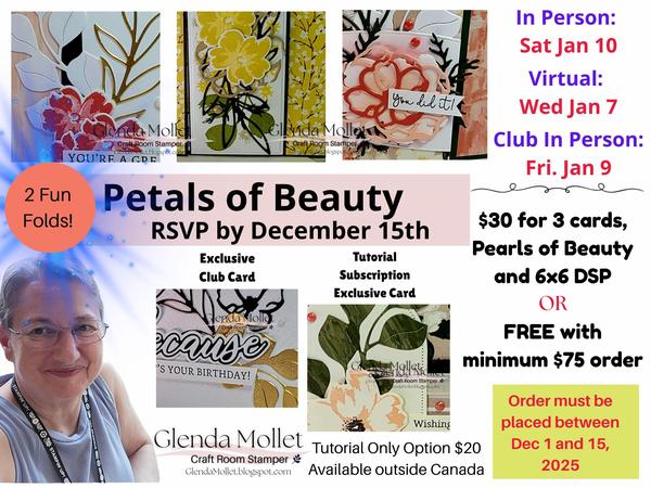 elegant projects! Registration for the January 2026 Club, Class, and Monthly Tutorial Subscription is now open until December 15, and this month we’re featuring the stunning Petals of Beauty bundle with the Brushed With Beauty designer paper.