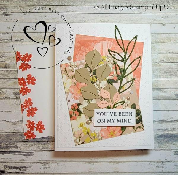 The star of the card is the Brushed With Beauty Designer Paper, which takes centre stage and sets the tone for the entire layout. Coordinating die cuts add depth and movement, while the Beautiful Pattern embossing folder brings